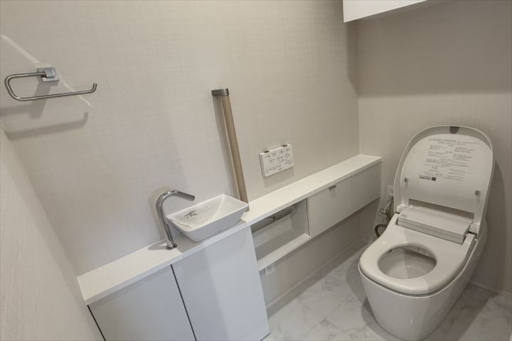 | 設備 | エアコン, 室内洗濯機置場, 独立洗面台, バストイレ別, 温水洗浄便座, 全室フローリング, 床暖房, 浴室乾燥機, TV付インターフォン, オートロック, エレベーター, 宅配ロッカー, 防犯カメラ, 駐輪場, ガスコンロ, バルコニー,ハンズフリー電気錠,ダブルロック |